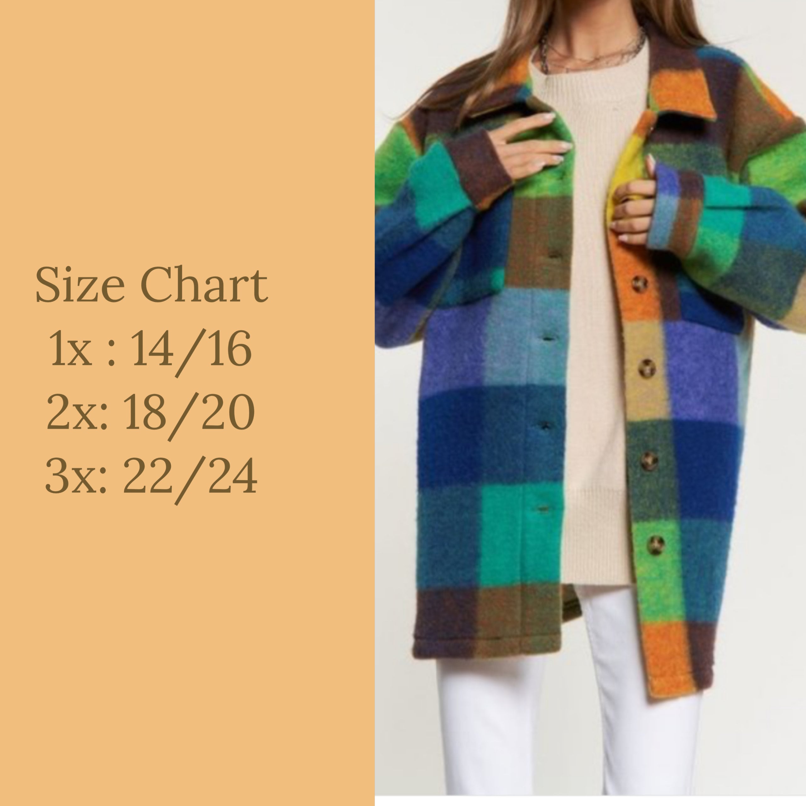 This shacket fits true to size models wearing a 2X . The models a 22/24 at the bottom 18/20 on top.