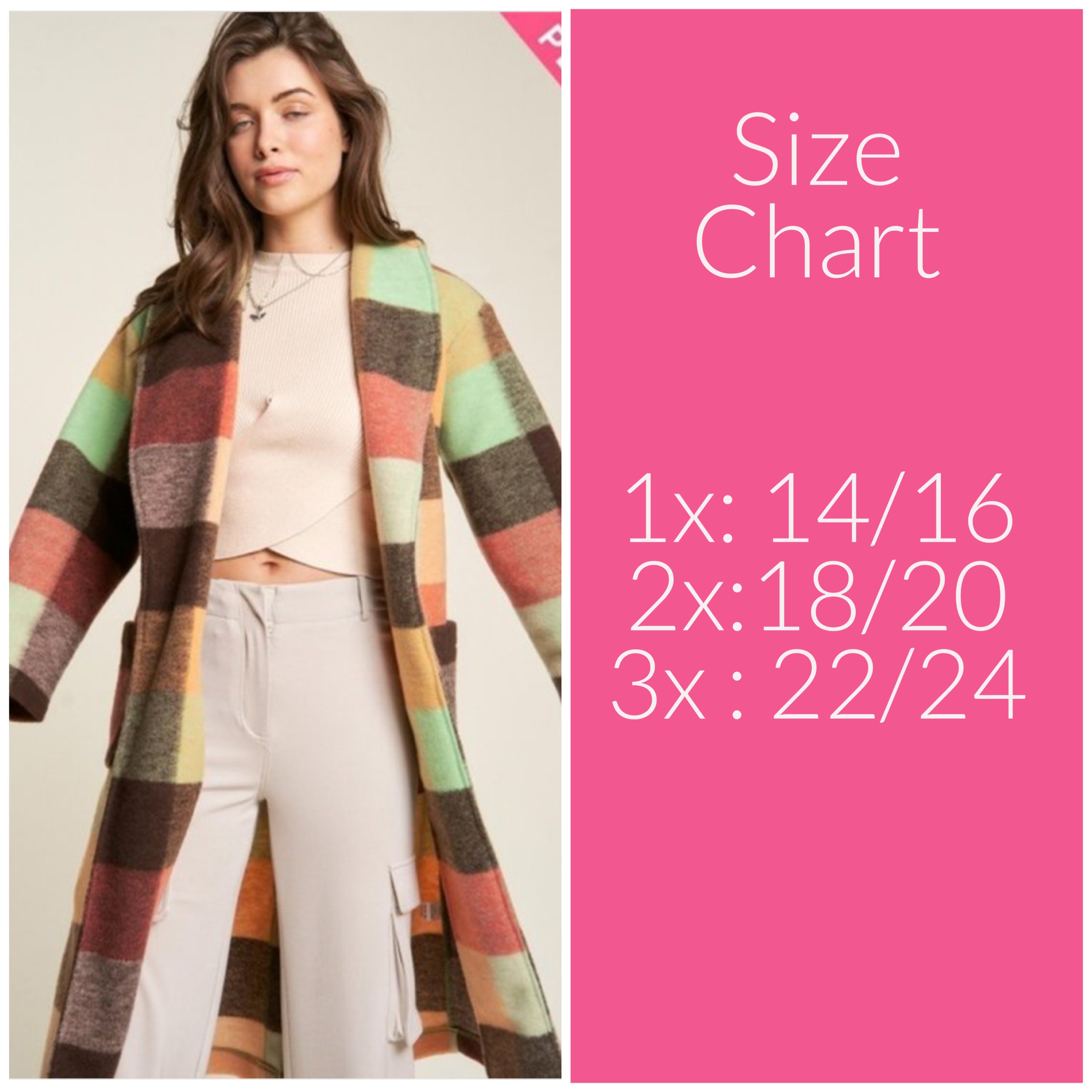 Model wearing a 2x in this coat . This item fits a little oversized. This coat has stretch. The models a 22/24.